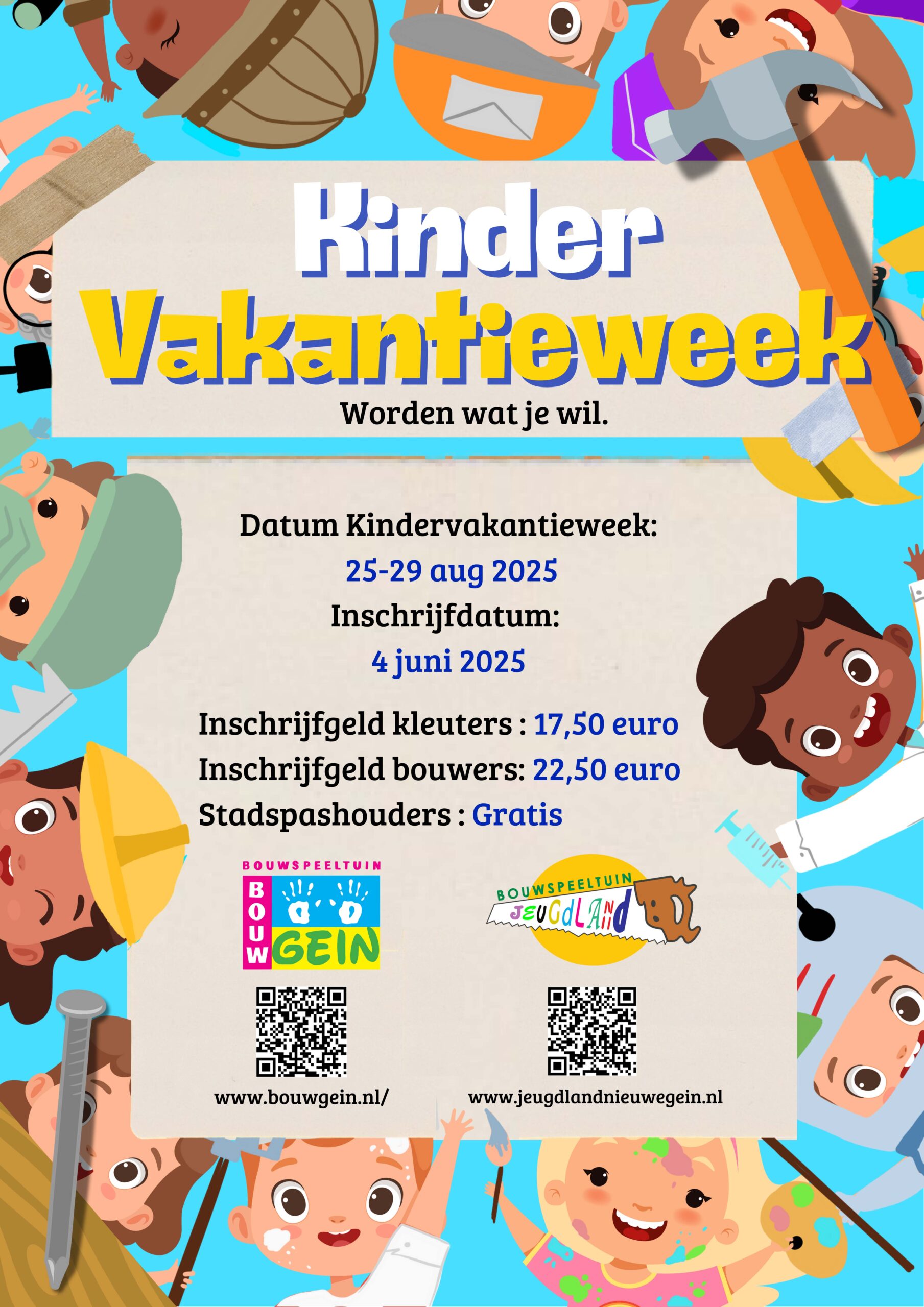 Dit jaar organiseren de bouwspeeltuinen Bouwgein en Jeugdland de KinderVakantieWeek met het thema ‘Worden wat je wil’.